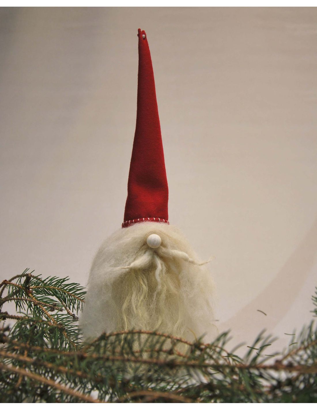 Scandinavian Christmas elf with white wool beard and red wool hat