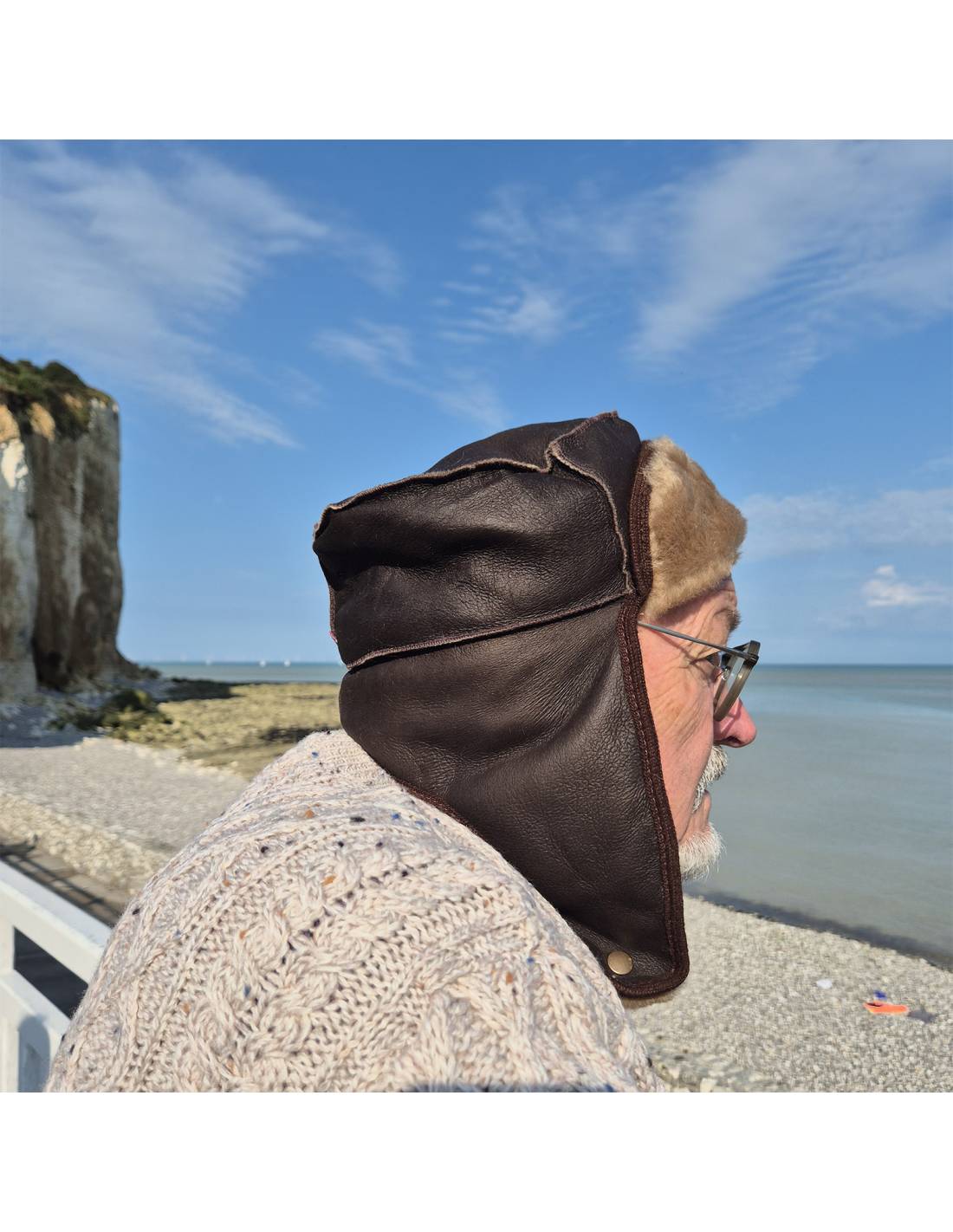 Nordic chapkas made of leather or sheepskin, aviator style