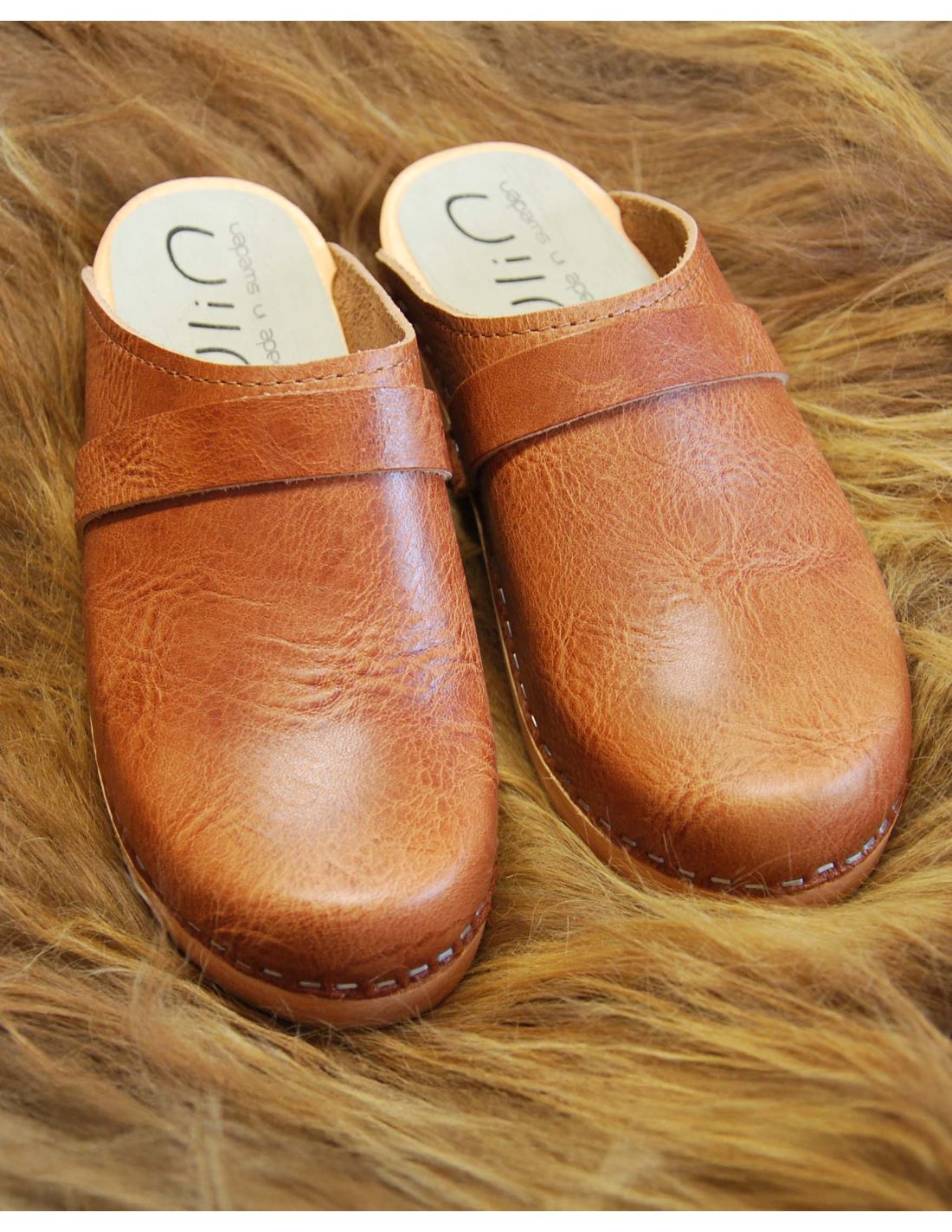 Women's swedish Clogs in  leather vegetal and wooden sole