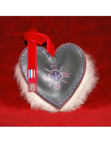 Nuestro Arome Nordique es un delicado adorno navideño con una cara de oveja y otra de piel de cordero gris pintada a mano para colgar en tu hogar de estilo escandinavo.