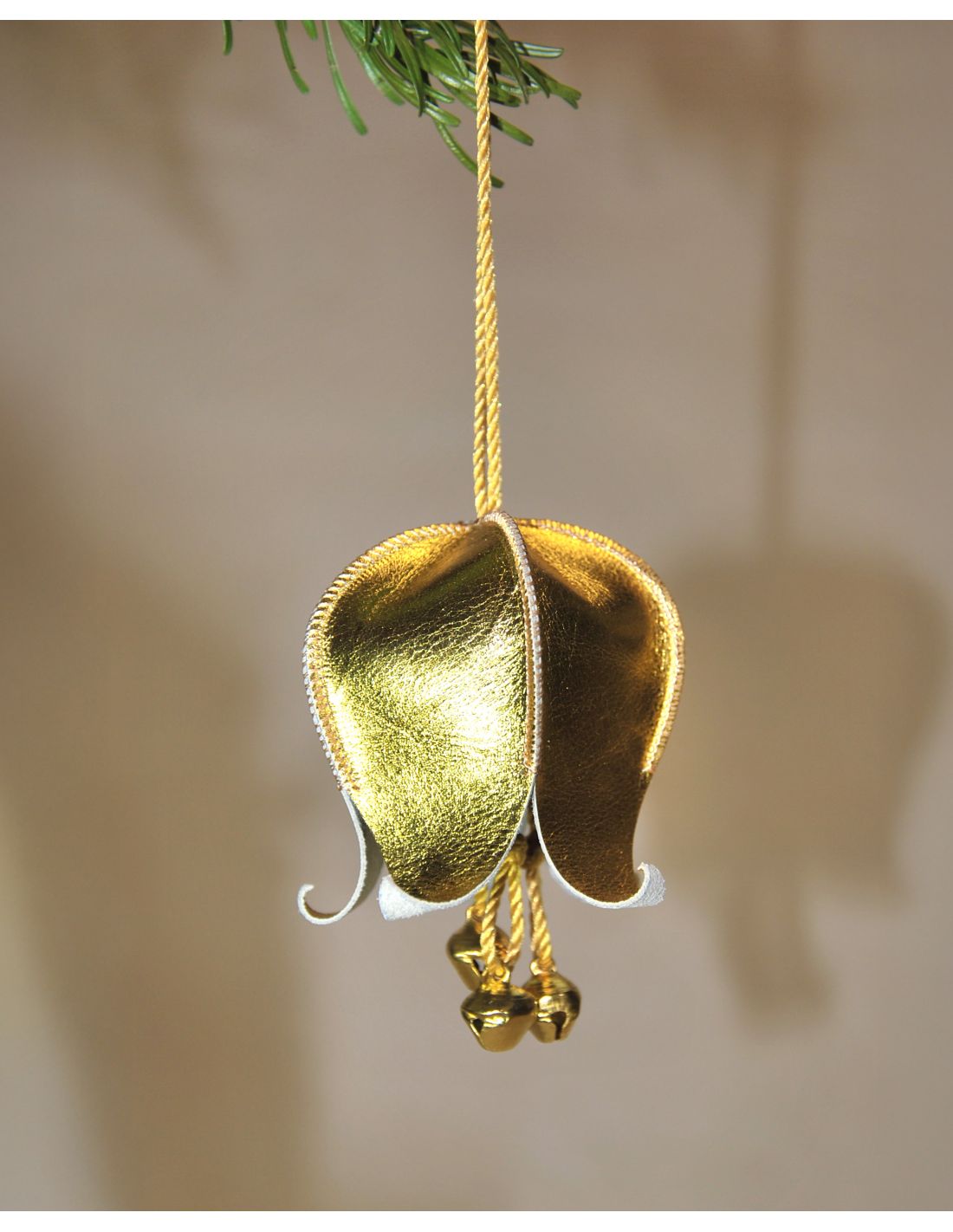 Campanillas musicales navideñas de cuero y cascabeles para el árbol de Navidad