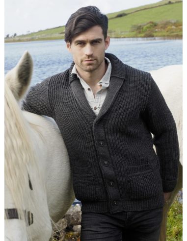 Un clásico cárdigan irlandés para hombre en suave y cálida pura lana merino. Un magnífico cárdigan para hombre que te protege del frío y el viento. A las mujeres también les encanta.