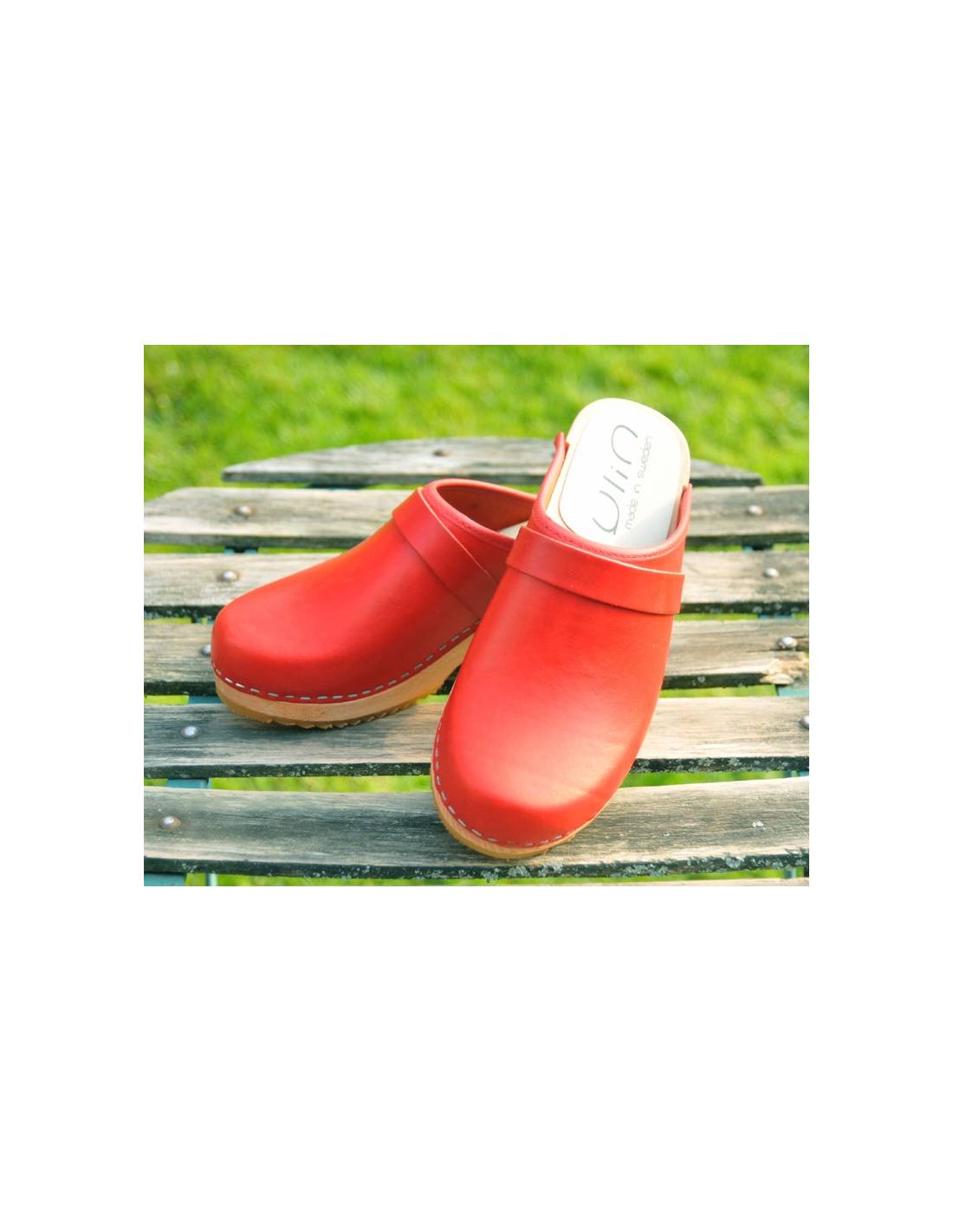 Sueco zuecos de madera cuero vegetal mujer