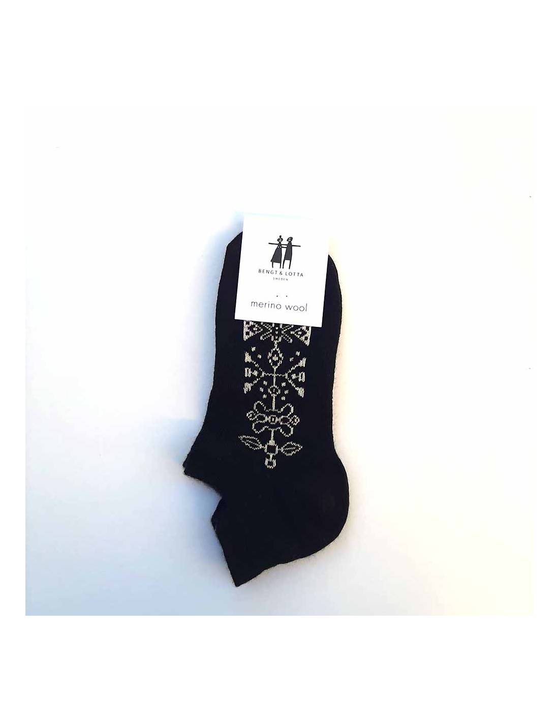 Elégantes socquettes fines en laine mérinos design suédois Bengt & Lotta avec un renfort sur le talon pour éviter les frottements