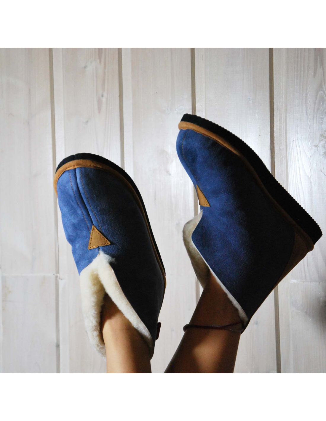 Chaussons mouton pour Femme chauds et hauts en peau d'agneau bleu