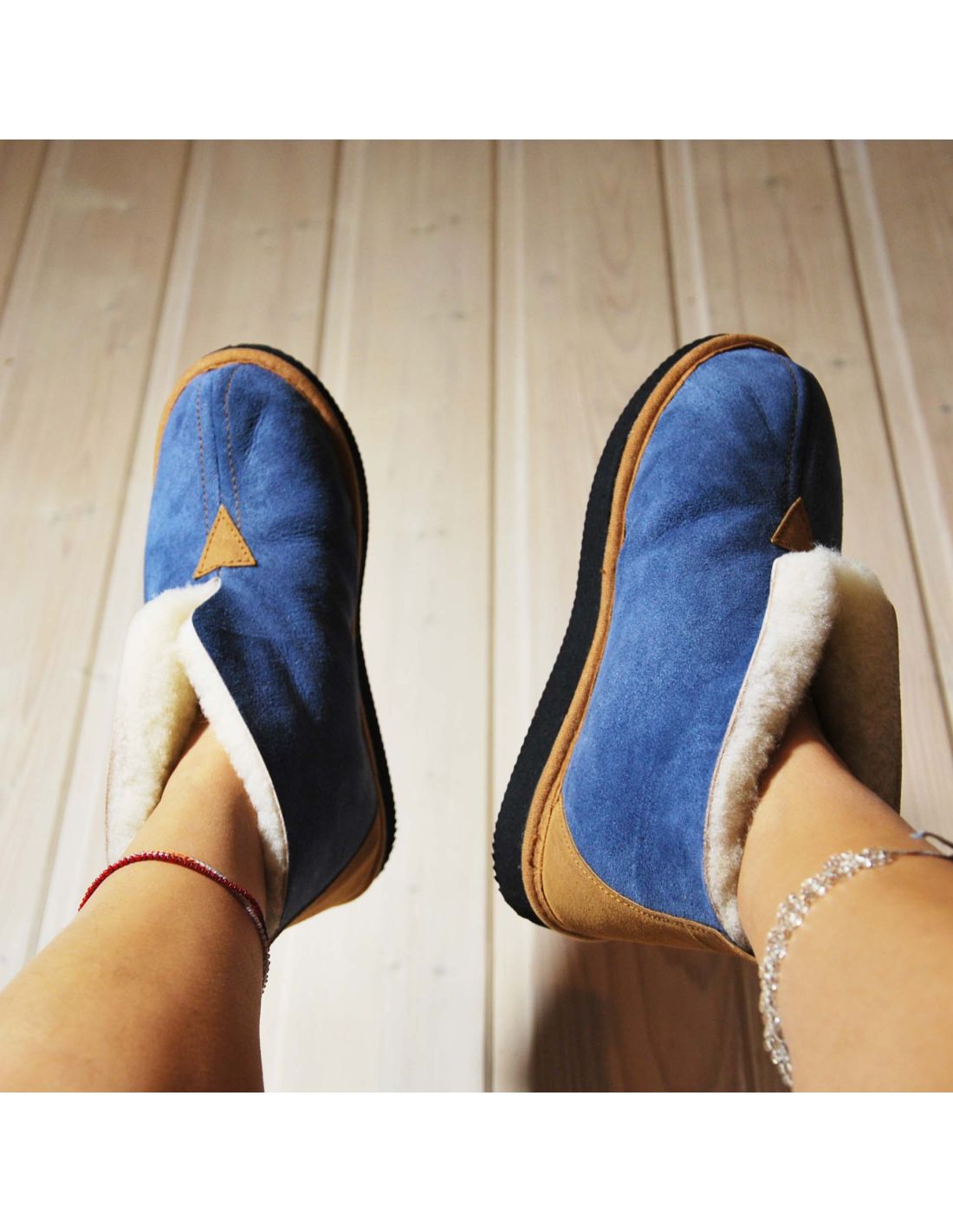 Chaussons nordiques chauds en peau d'agneau véritable tannage végétal.