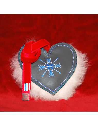 Notre Arome Nordique est une délicate décoration de Noël face mouton et face cuir d'agneau Gris peinte à la main à suspendre dans votre intérieur scandinave.