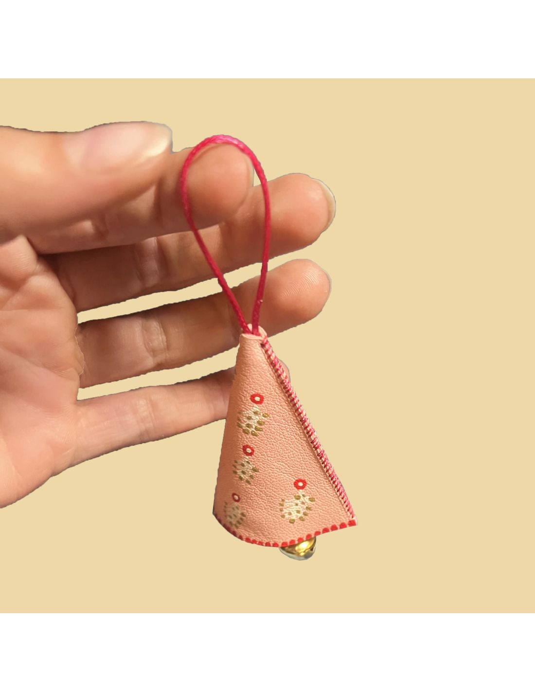 Clochette de Noël Rose aux motifs nordiques en cuir d'agneau peint pour Sapin