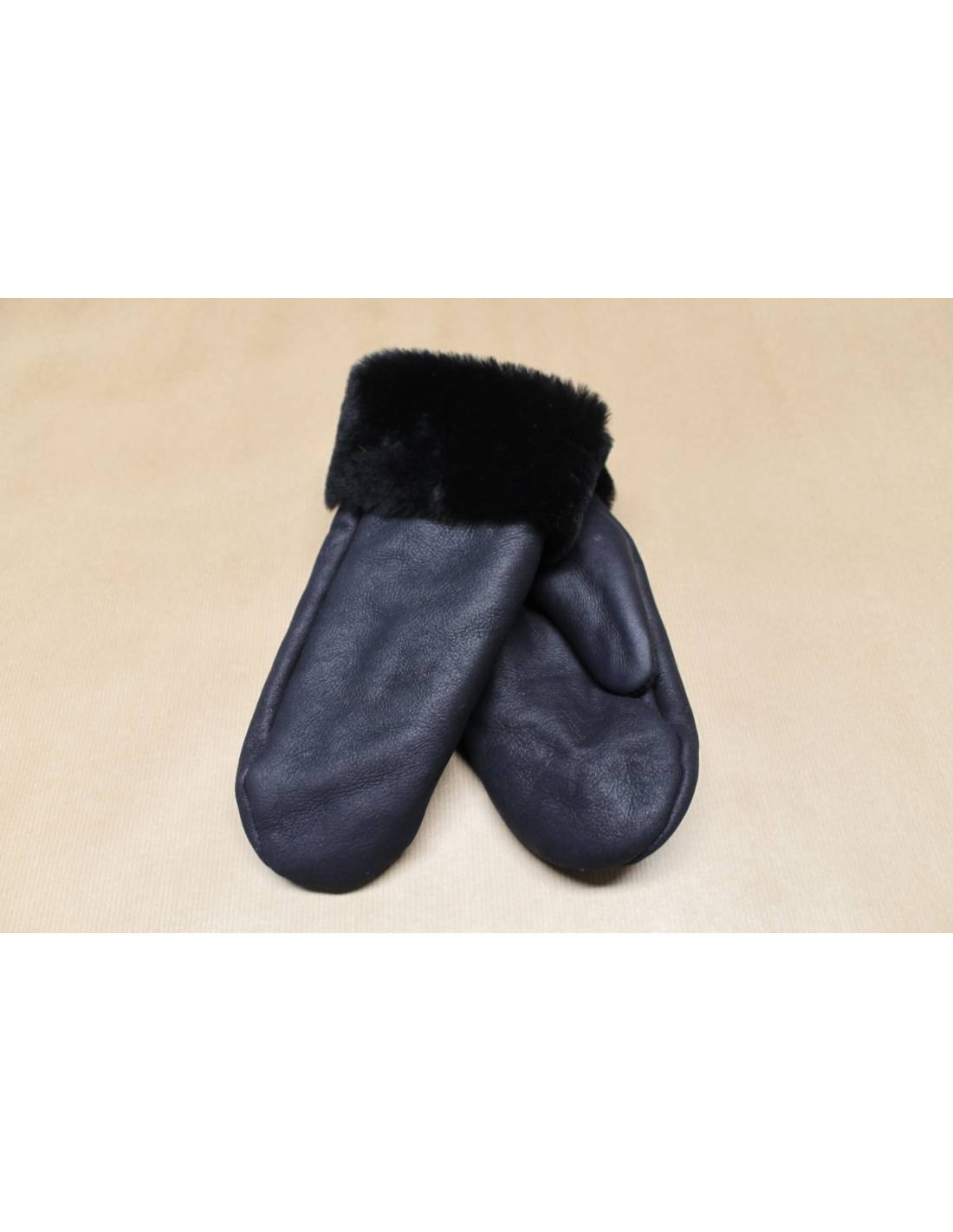 Moufles en cuir pour femme en peau d'agneau retournée chaudes et douces.