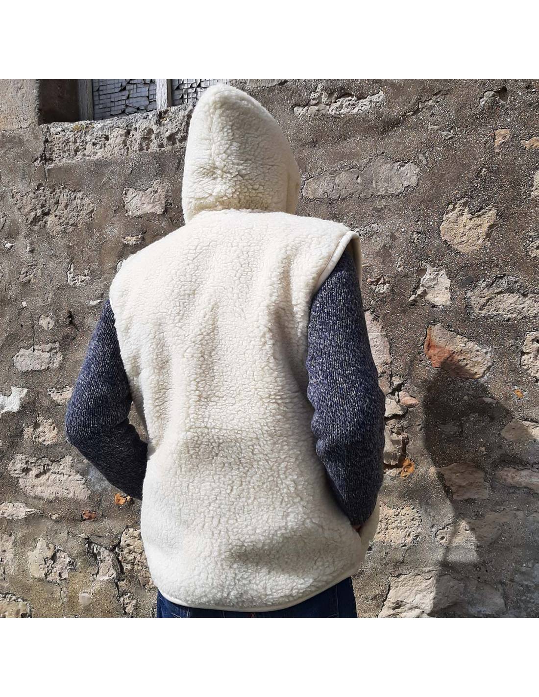 Veste pure laine avec capuche et fermeture ZIP laine véritable sans manche fermeture éclair