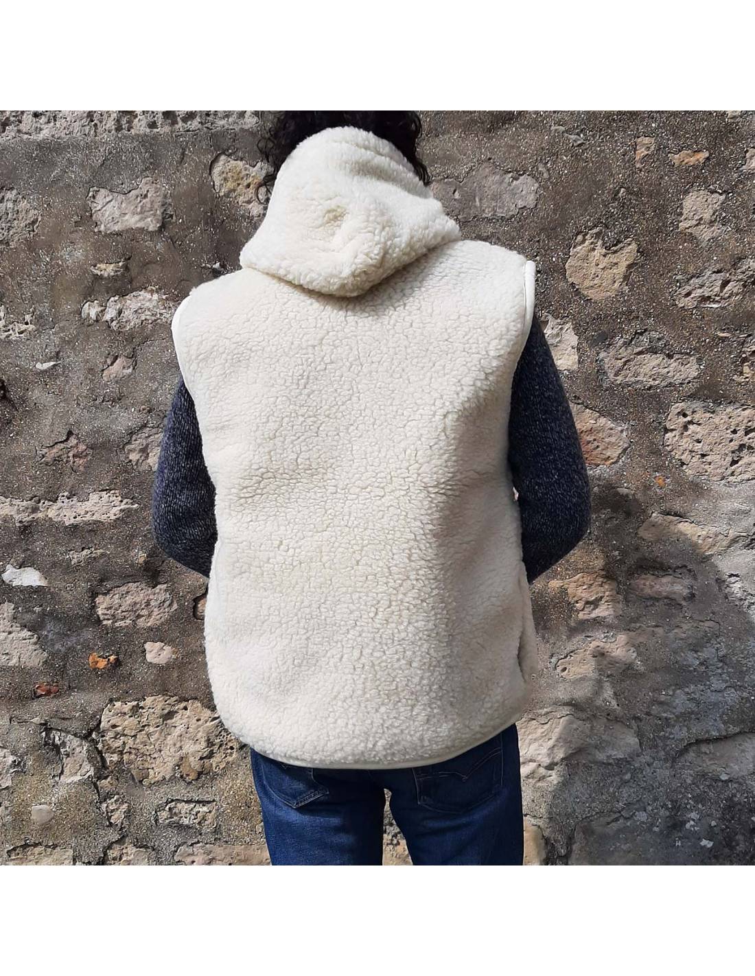 Veste pure laine avec capuche et fermeture ZIP veste sans manches laine véritable