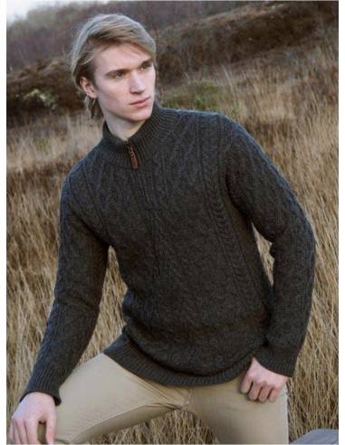 Pull camionneur irlandais avec un col montant fermant par Zip.