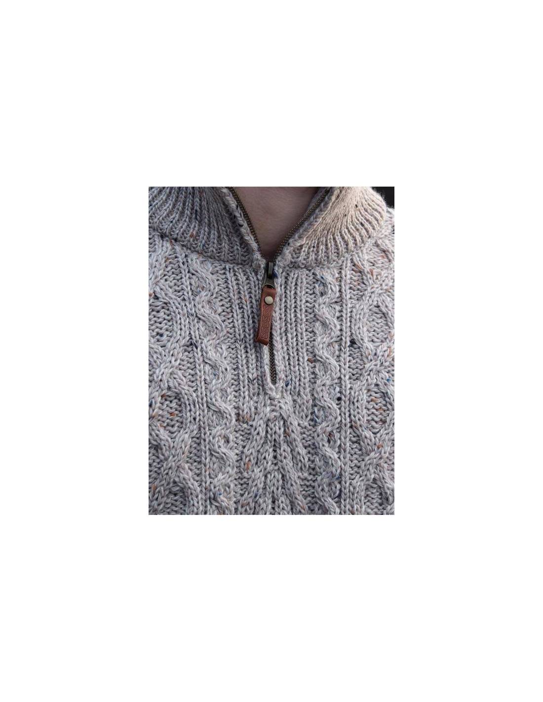 Pull camionneur irlandais avec un col montant fermant par Zip.