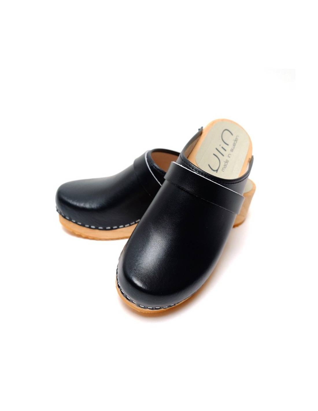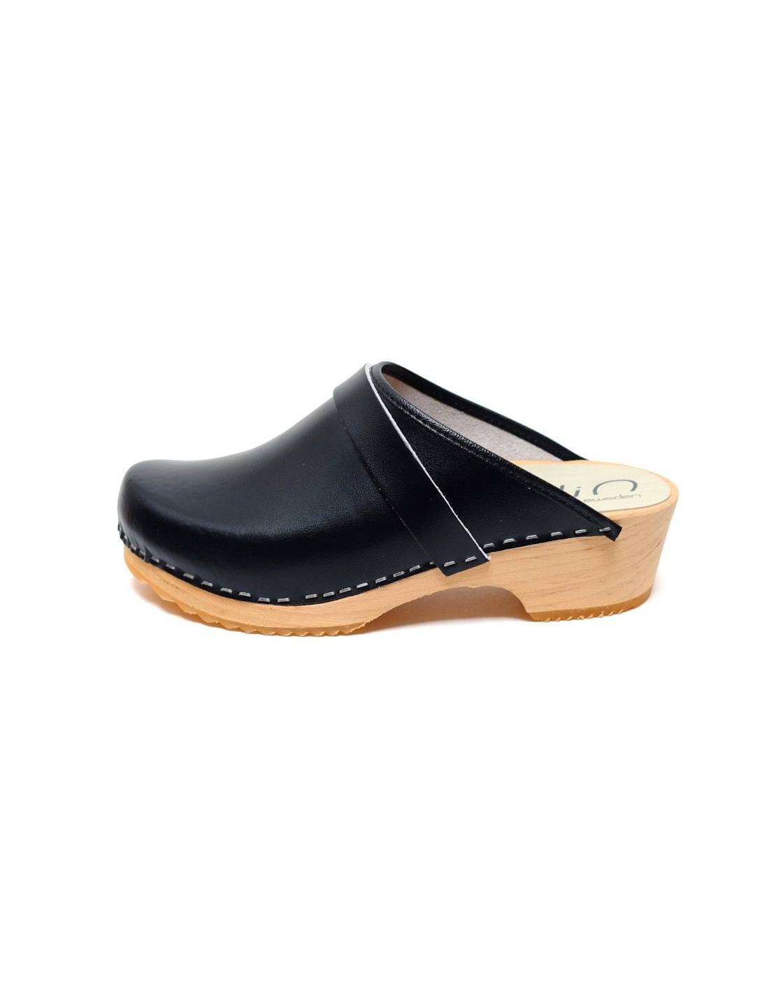 Sabots suédois pour pieds fins en bois en cuir noir PU