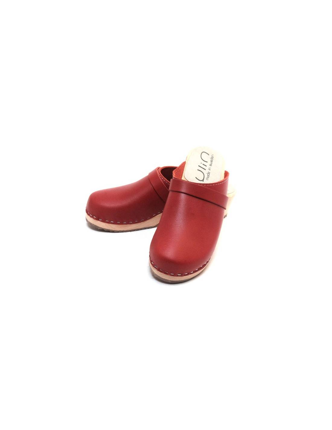Sabots suédois bois en cuir rouge V