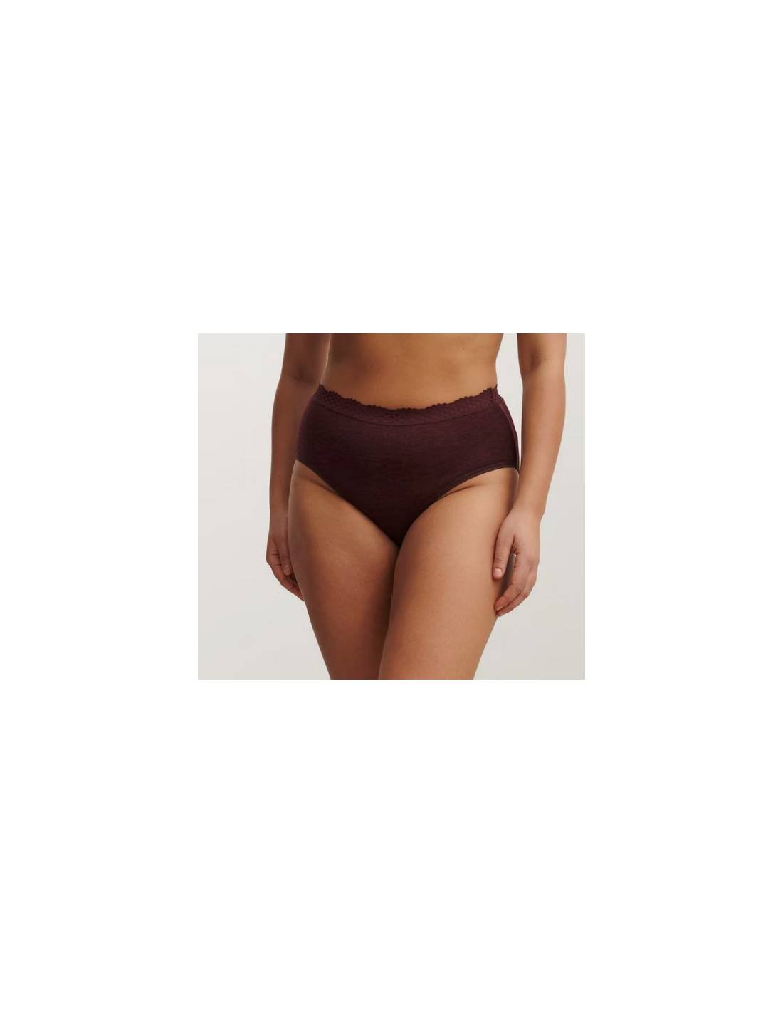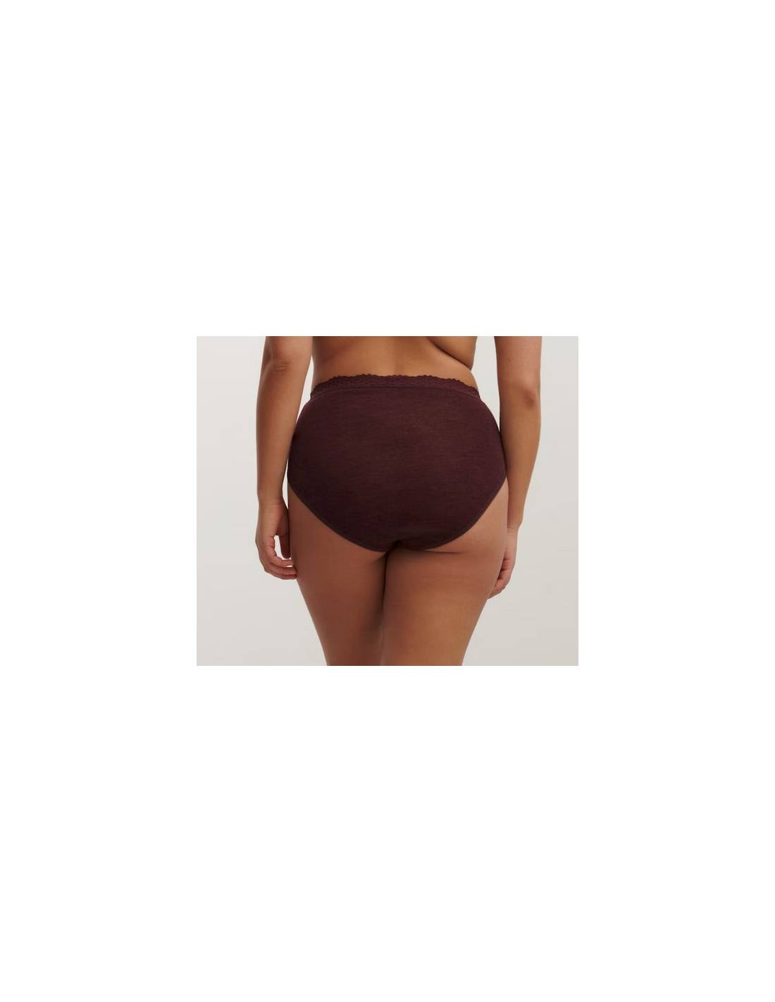 Culotte femme bordeaux avec dentelle élastique en laine mérinos et soie